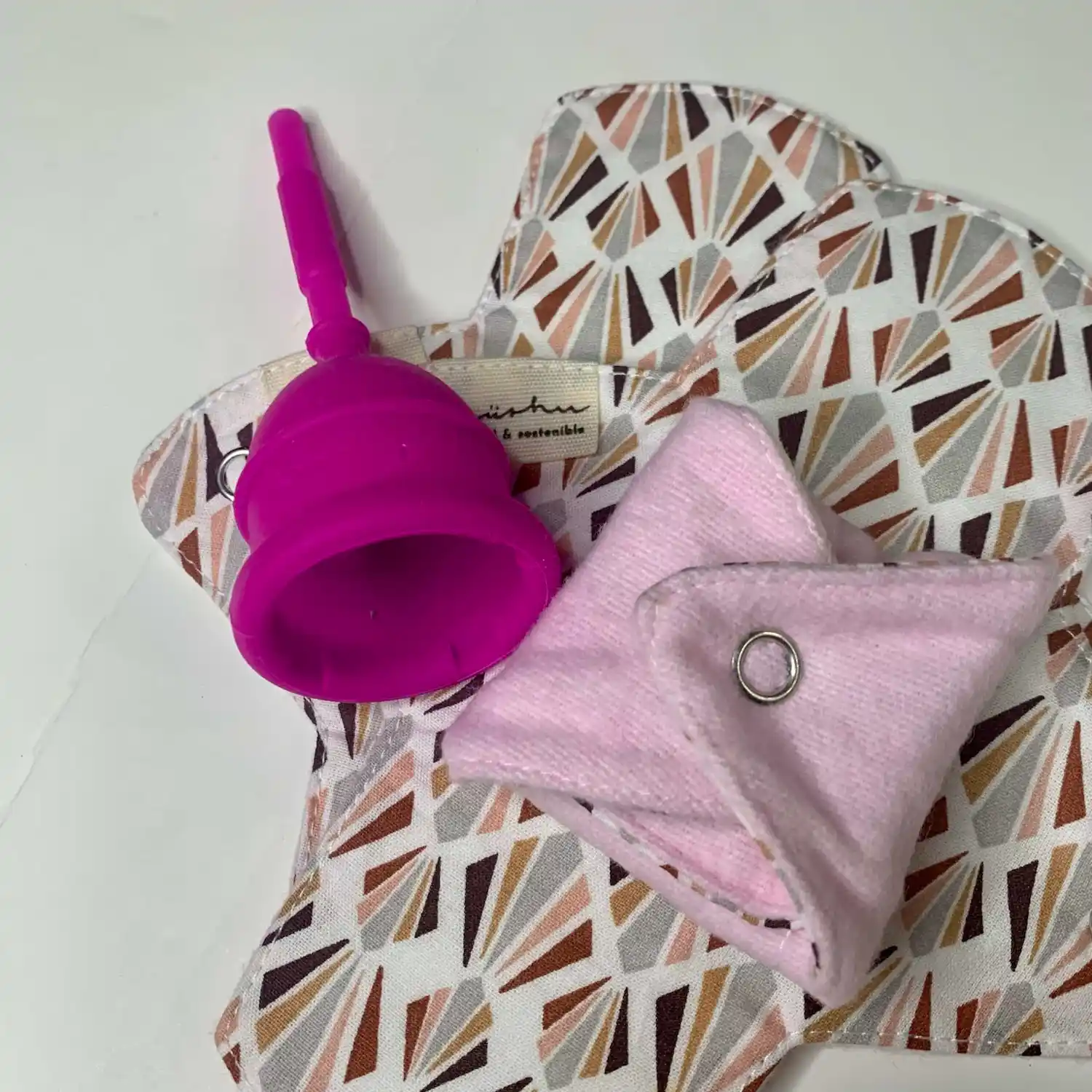 - 3 reusable cotton pantyliners made of 100% cotton with Oeko-Tex certification.