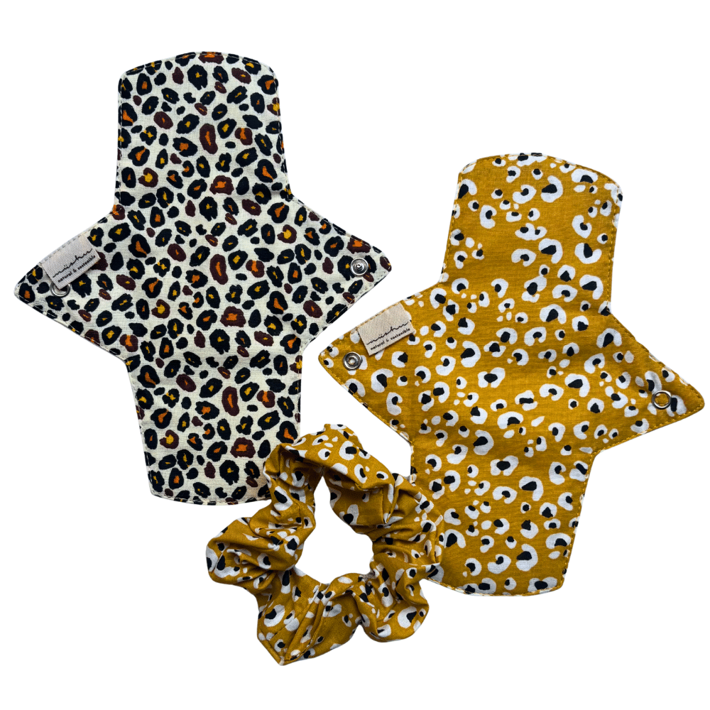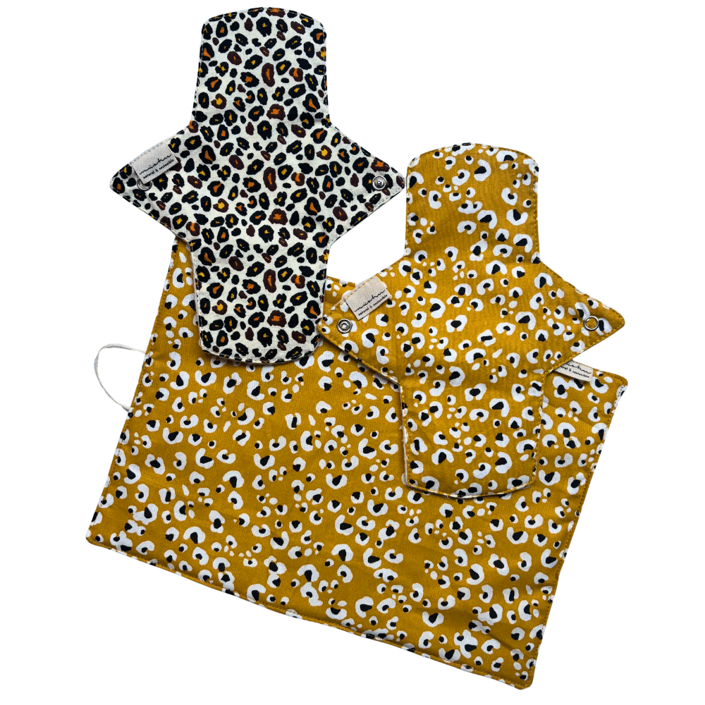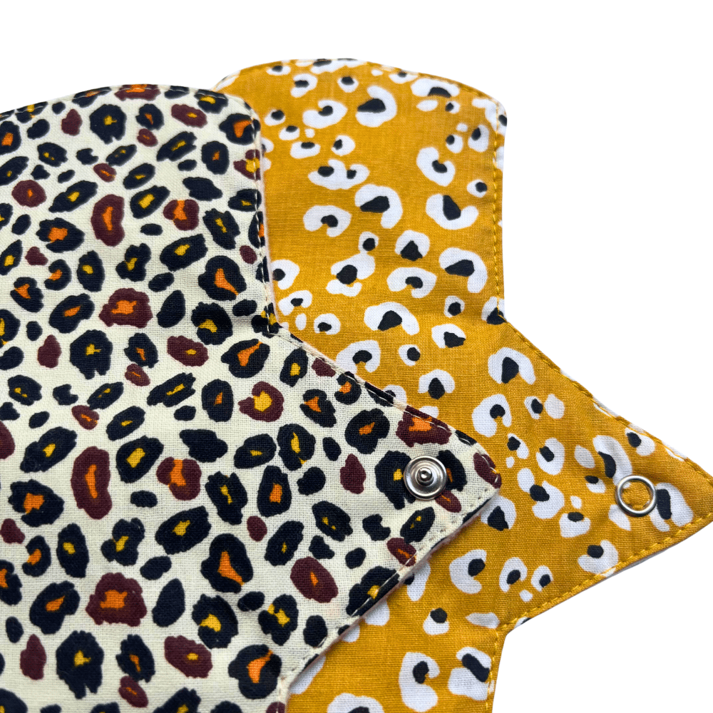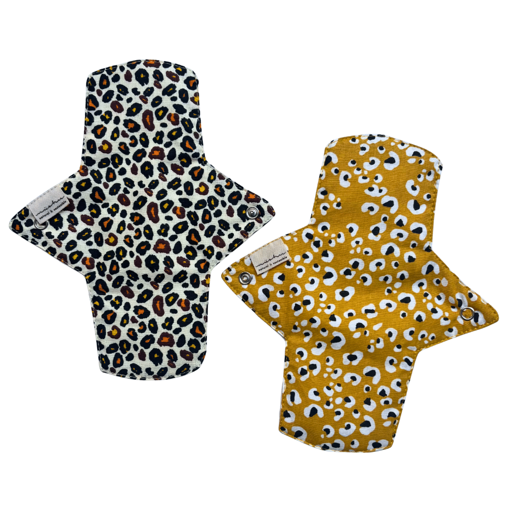 - 2 compreses reutilitzables amb estampat lleopard, dissenyades per ser suaus amb la teva pell i respectuoses amb el planeta 🌍.